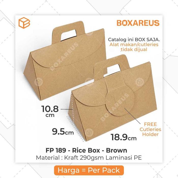 Rice Pack Bungkus Nasi Kemasan Kertas Makanan Lunch Box | FP 189 Stiker - Large Brown