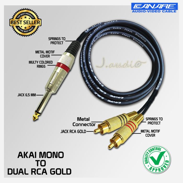 JAPAN STANDARD - Kabel Audio/ Kabel In Out Mixer Akai Mono 65MM To 2x RCA Gold - TJE - 7 METER