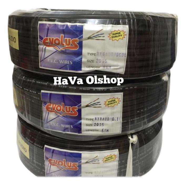 KABEL SERABUT EVOLUS 2x0.75 (50 meter) HITAM PUTIH - Hitam