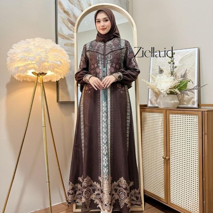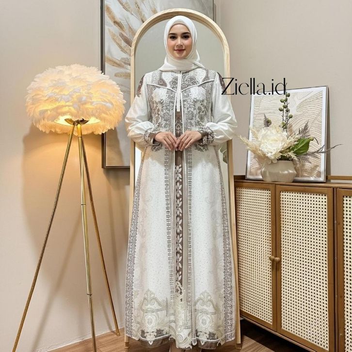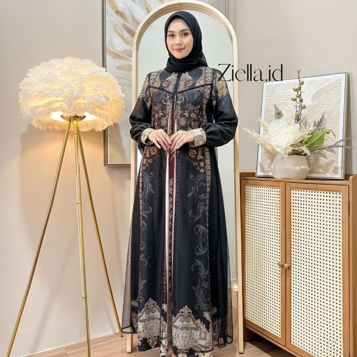 Promo Hulya Dress Gamis Muslim Bahan Cotton Turkey Printing Mix Tulle Sparkle Nyaman Cantik Mewah