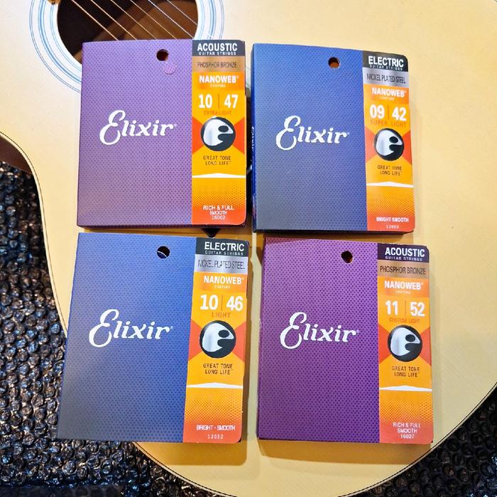 senar gitar Elixir akustik acoustic 010 satu set - Akustik 10-47