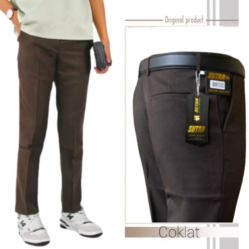 CELANA BAHAN FORMAL PRIA COKLAT slimfit