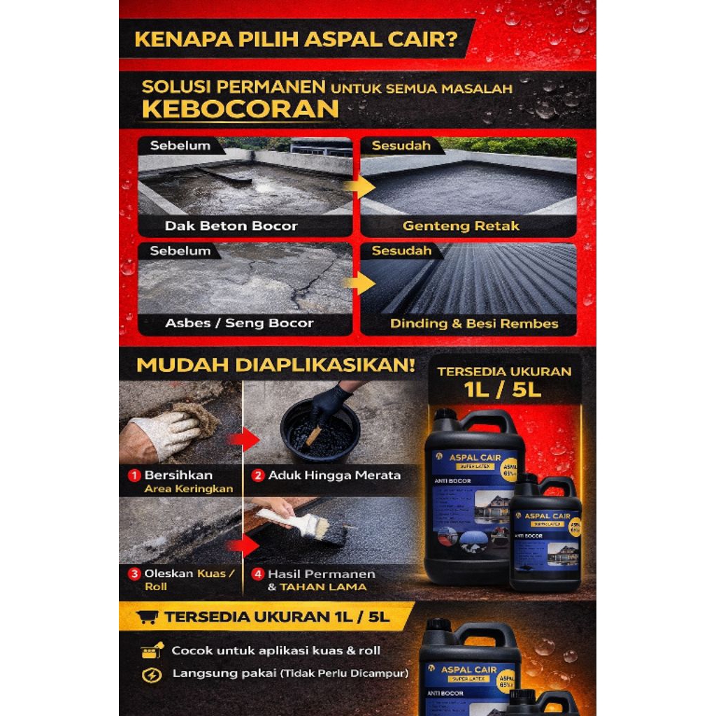 Aspal Cair Super Latex Kandungan Aspal 65 PERSEN ++ 1Kg,2Kg,5Kg