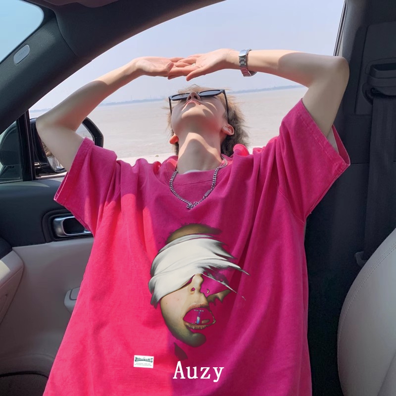 AUZY retro Amerika wajah manusia kaos pria wanita T-shirt baju oversize t shirt distro
