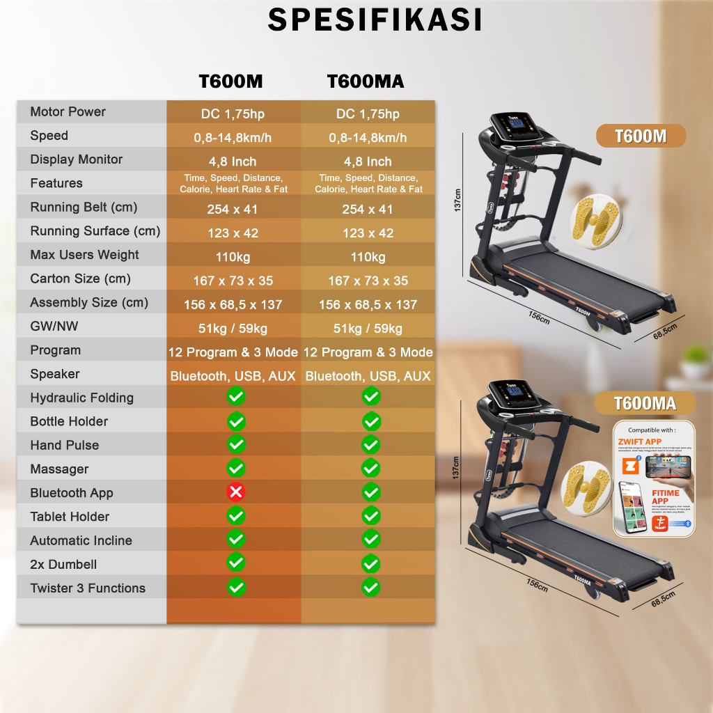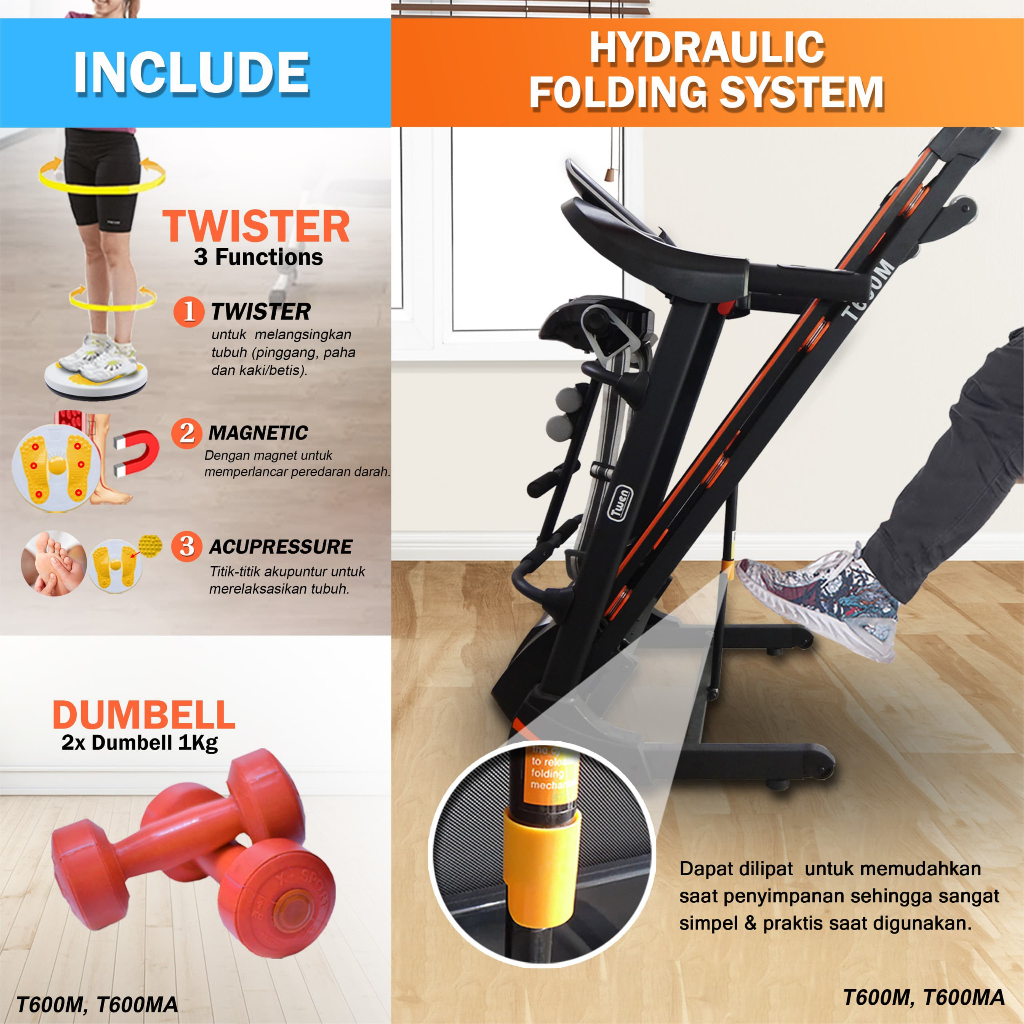 TWEN T600M T600MA series Treadmill Portable / Treadmill Electric Low Watt / Treadmill Elektrik Alat Olahraga