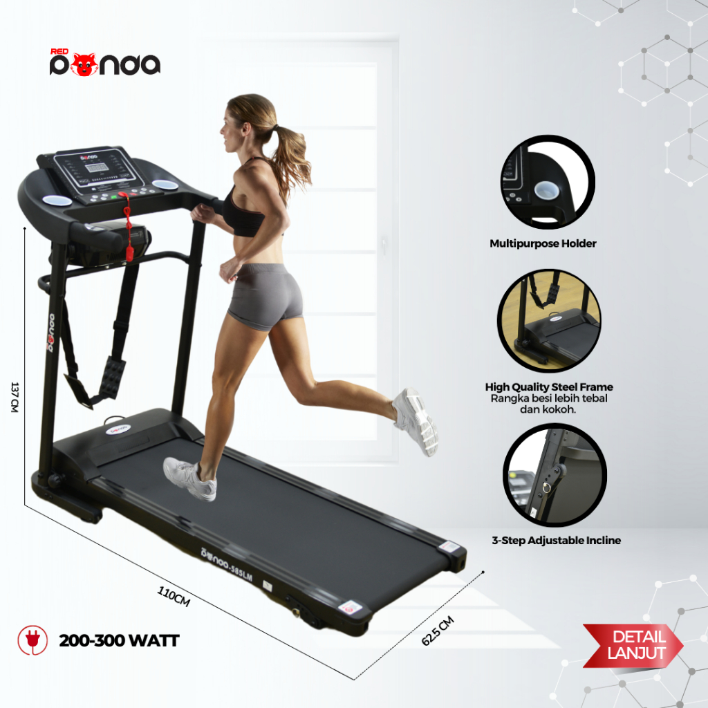 Treadmill REDPANDA Elektrik 585LM Multifungsi Murah Listrik Lipat Portable Low Watt Fitness Gym