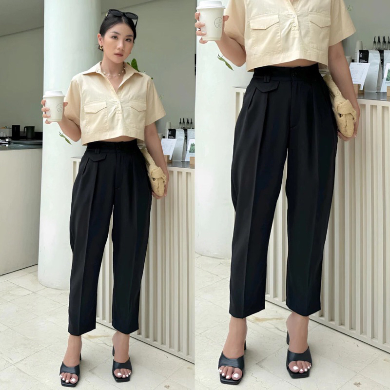 Ara Basic Pants Highwaist Celana Baggy Angkle Pants Celana Kantor Loose Pants