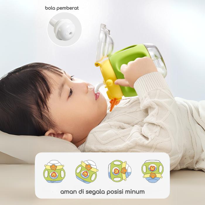 HUGGY BABY WB01 TRITAN CUP WEIGHTED BOTTLE 350ML | BOTOL MINUM ANAK PEMBERAT - ORANGE BUNNY