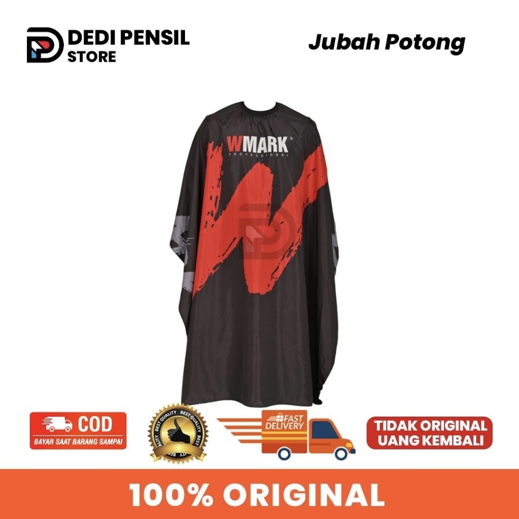[BISA ] Wmark Premium Cutting Cape Kip Barbershop Hitam "W" Merah