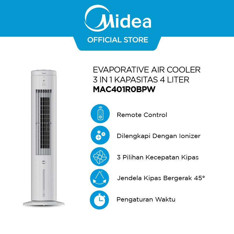 Midea Air Cooler 3-in-1 40 Inch MAC401R0BPW/MAC401R0BPK | Remote, Ionizer & Humidifier | Kipas AC Portable - FREE Ice Pack