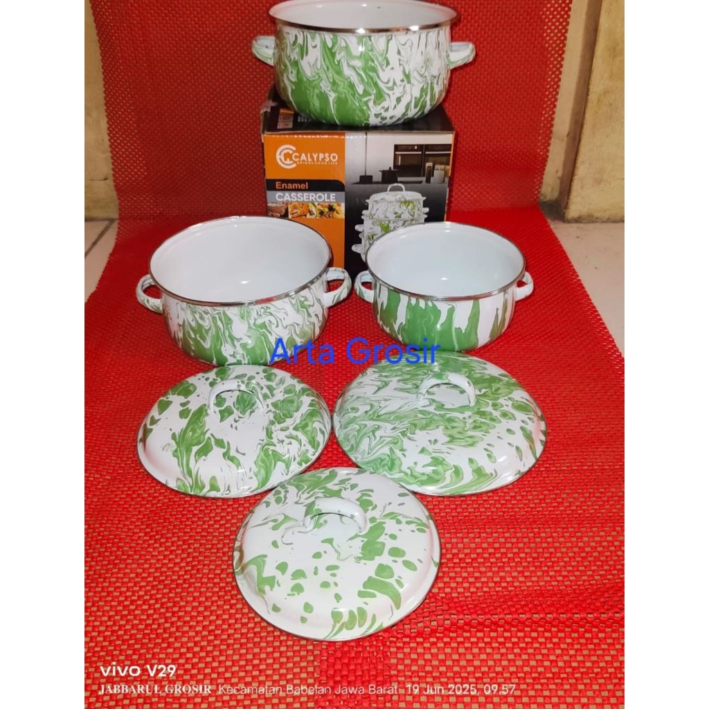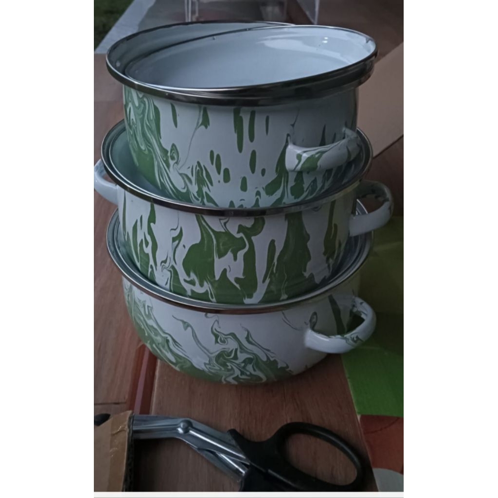 Panci set Enamel Blirik 3 susun warna hijau jadul