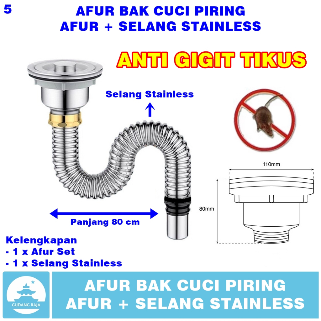 Afur Wastafel Cuci Piring Stainless Bak BCP Afur Saringan Cuci Tangan Selang Stenlis Set Anti Tikus