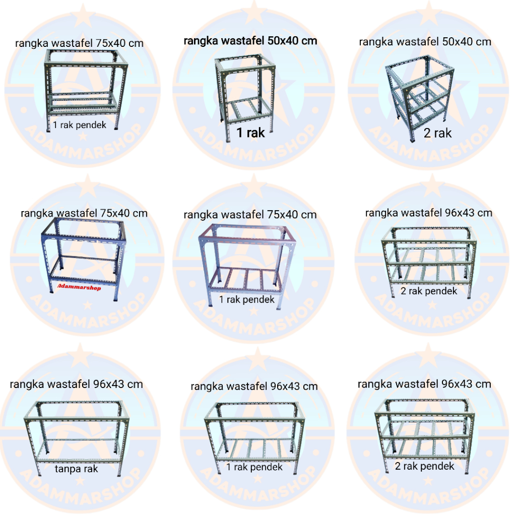 rangka wastafel/meja bak cuci piring wastafel 96x43 ,75x40,50x40 bahan besi siku lubang 1mm