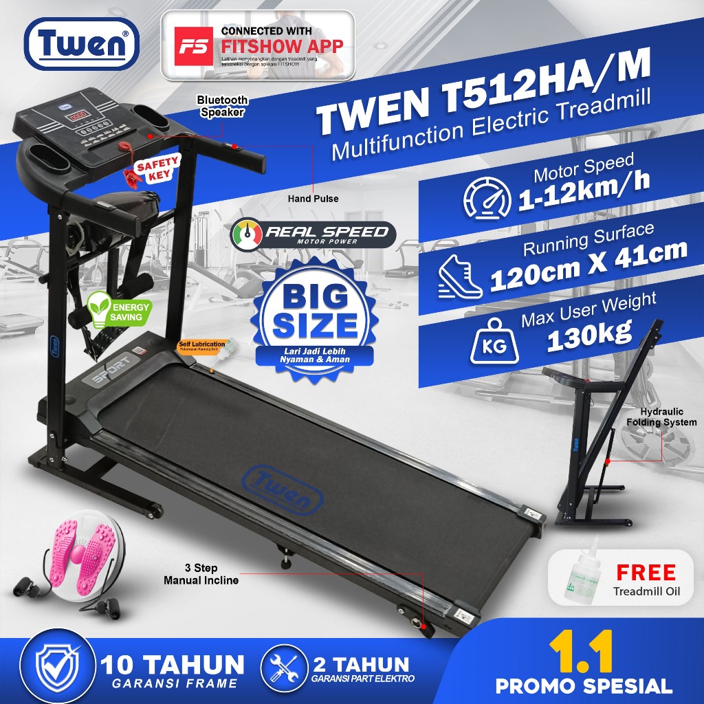 TWEN T512HA +M Treadmill Listrik Treadmill Portable Treadmill Multifungsi Treadmil Lipat Treadmill Electric Low Watt Alat Olahraga