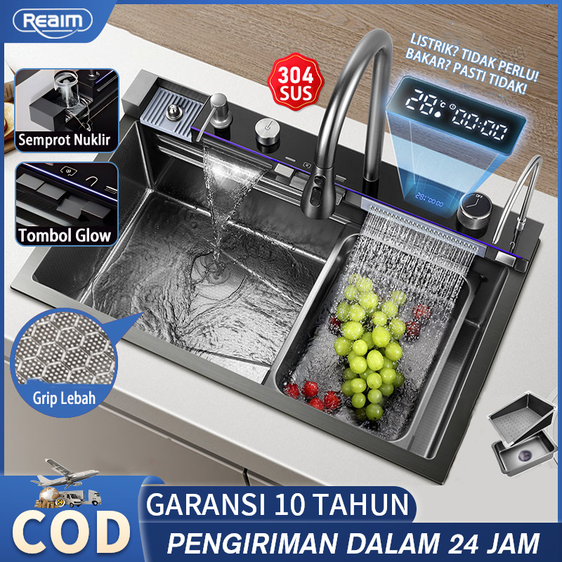 Reaim - Paket Kitchen Sink Hitam kran Wastafel Cuci Piring Stainless sink stainless sink cuci piring Dengan Keran Tarik