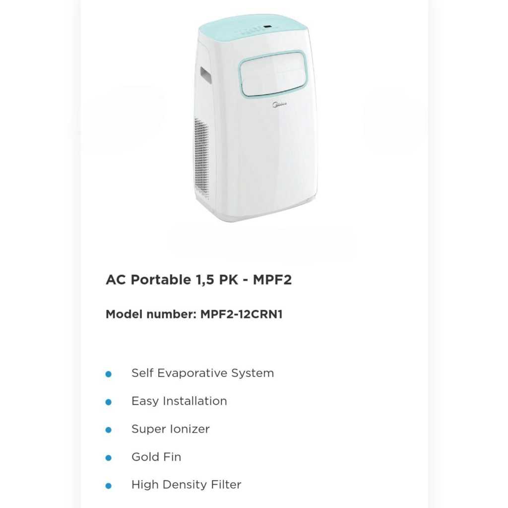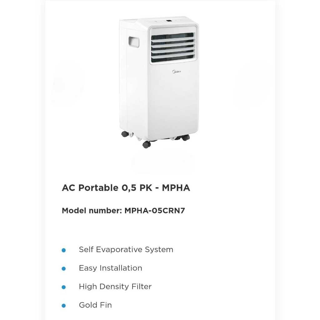 MIDEA AC Portable 0,5 PK MPHA 05CRN7 / 1 PK MPHA 09CRN7 / 1 PK MPF2 09CRN1 /1,5 PK MPF2 12CRN1