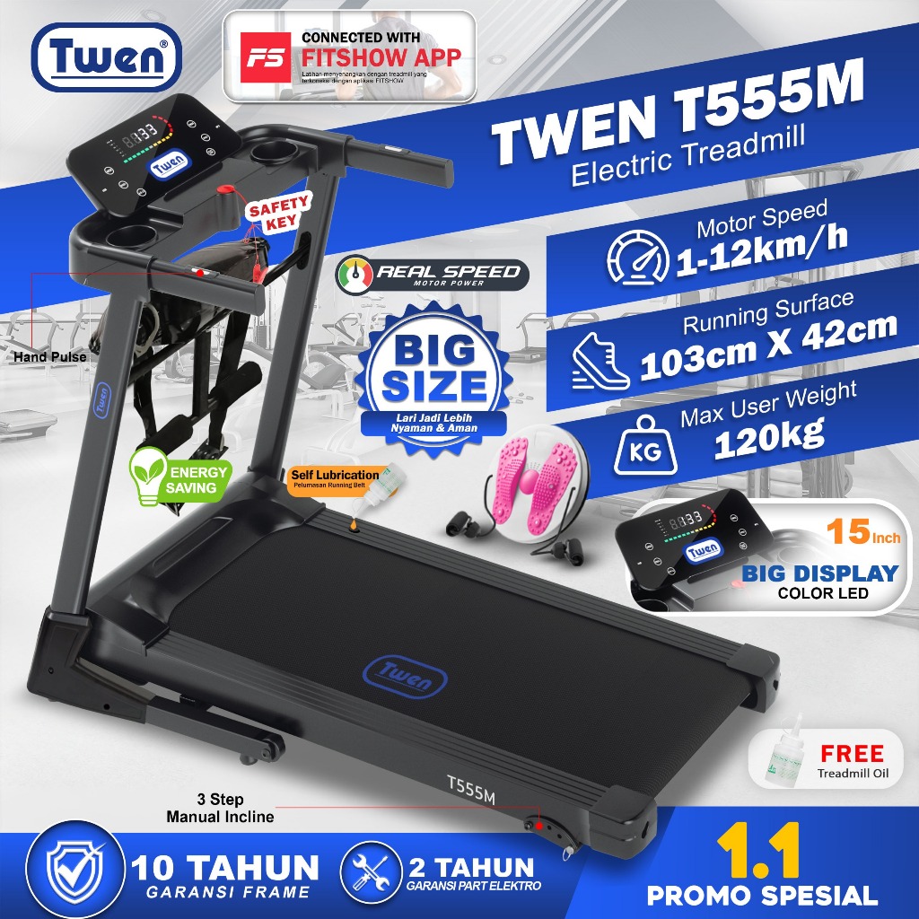 TWEN T555 T555M series Treadmill Listrik Treadmill Portable Treadmill Multifungsi Treadmil Lipat Treadmill Electric Low Watt Alat Olahraga