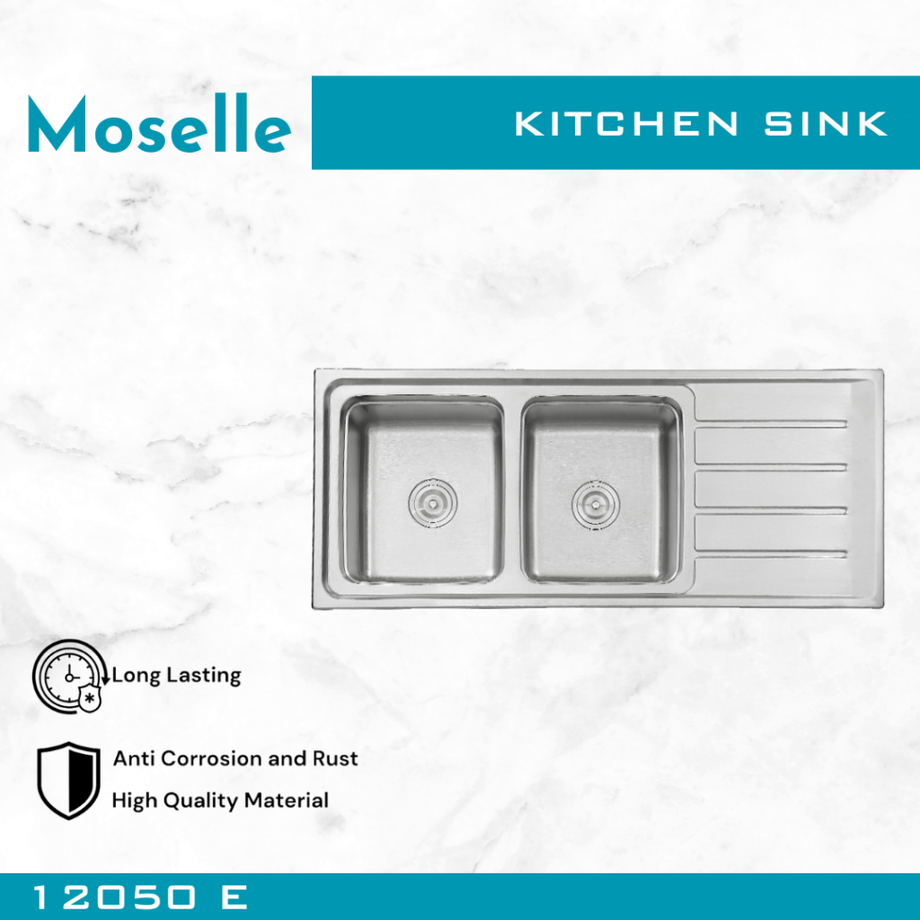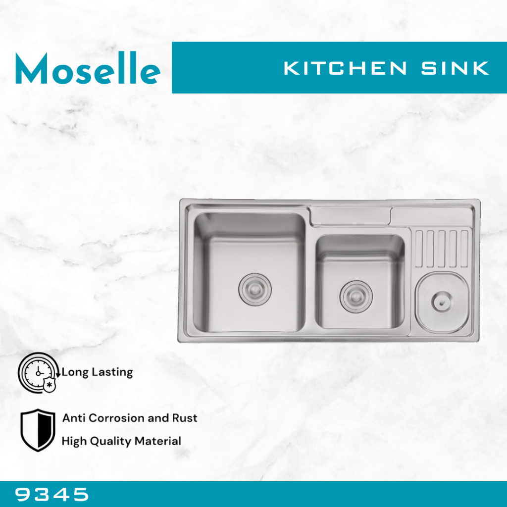 MOSELLE Bak Cuci Piring Dapur Kitchen Sink Stainless Steel Wastafel Paket Afur Selang 7545 8050 9345 12050