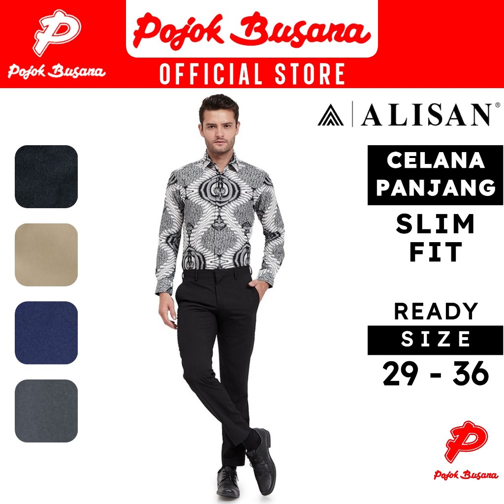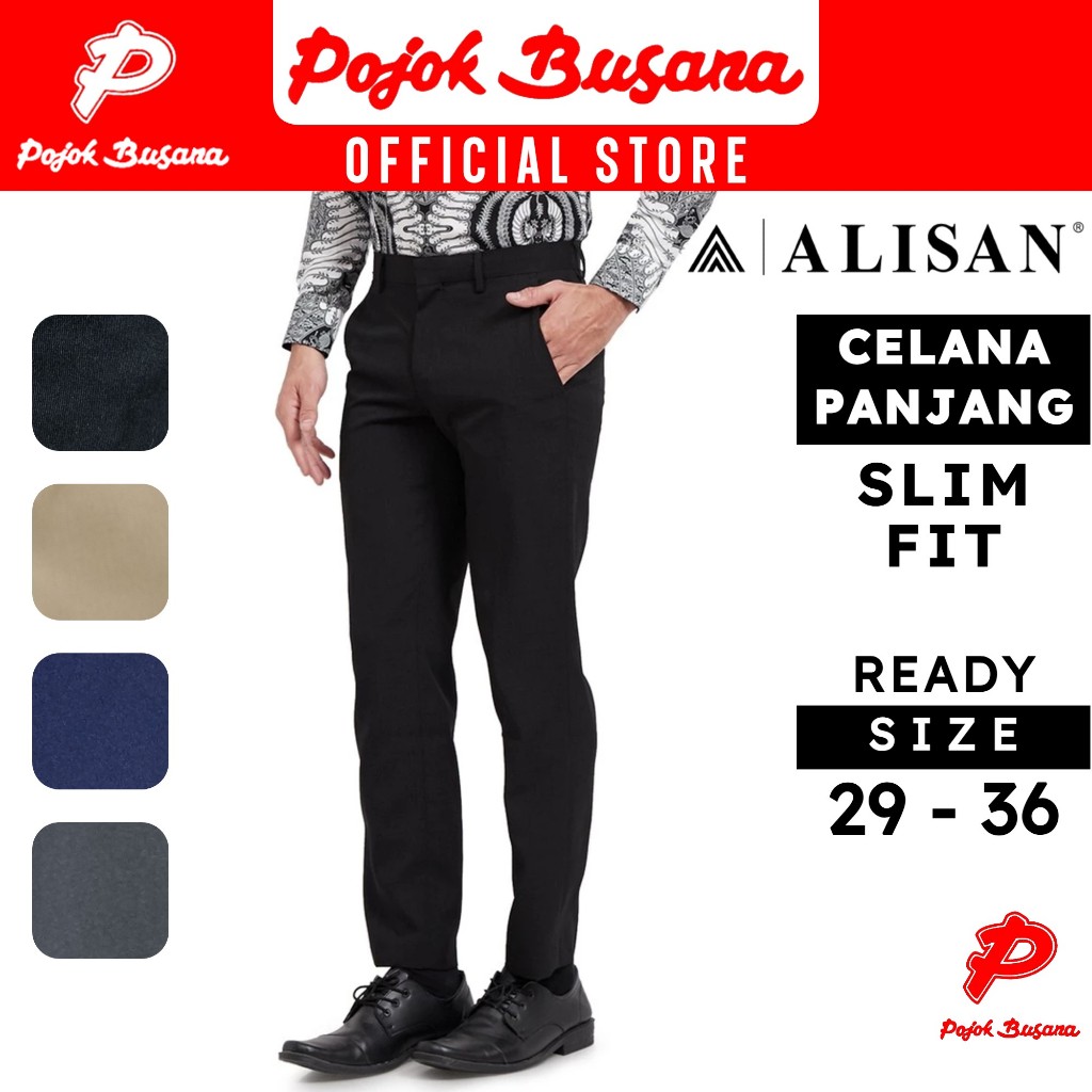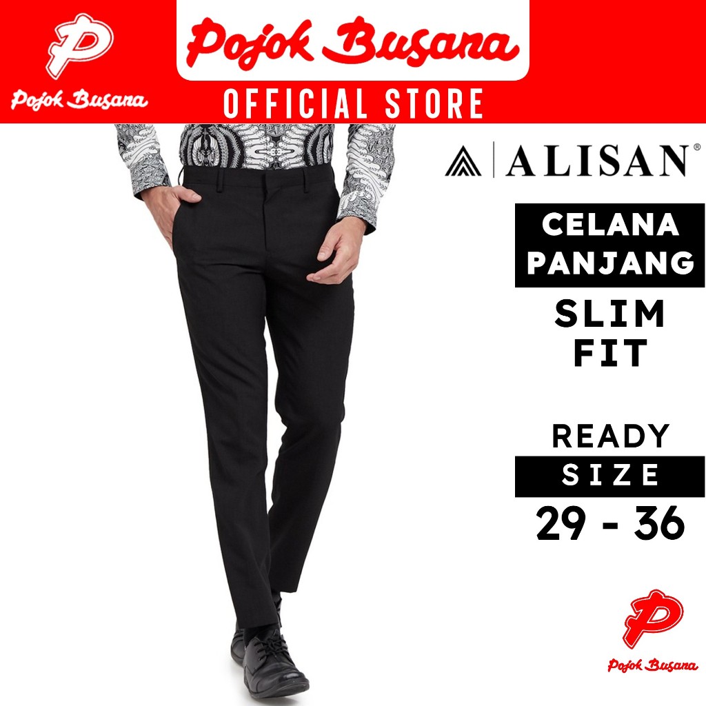 Pojok Busana Celana Panjang Formal Alisan Slim Fit Pria - Celana Kerja Bahan Cowok Sopan - Hitam