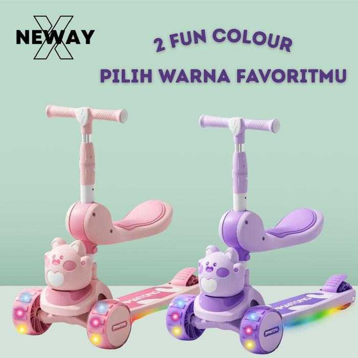 NewayX Skuter Mainan Anak Marmut Love 2 in 1 Scooter Lipat 2in1 Duduk Roda Tiga Lampu Musik Rem Toys