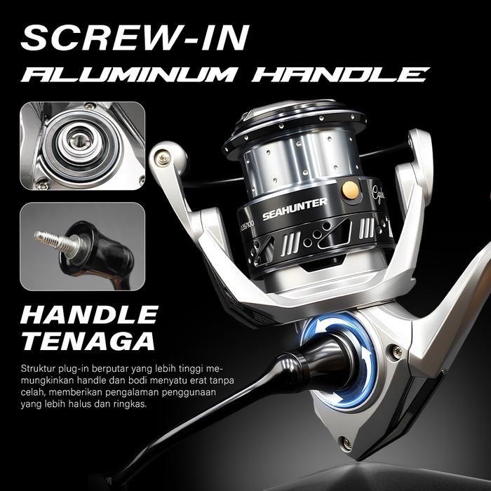SeaHunter Cyberron 3000 Reel Pancing Power Handle, Gulungan Reel Pancing SW Aluminum AIloy Spool,6+1