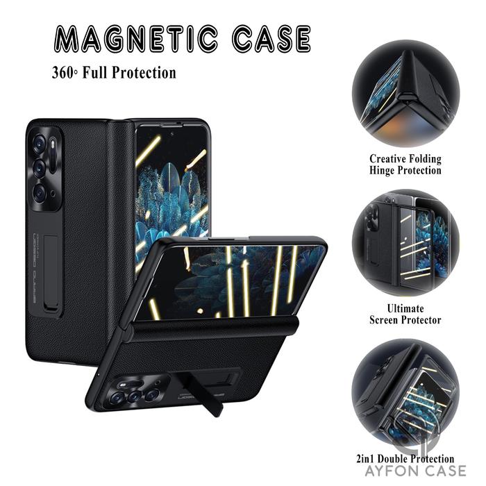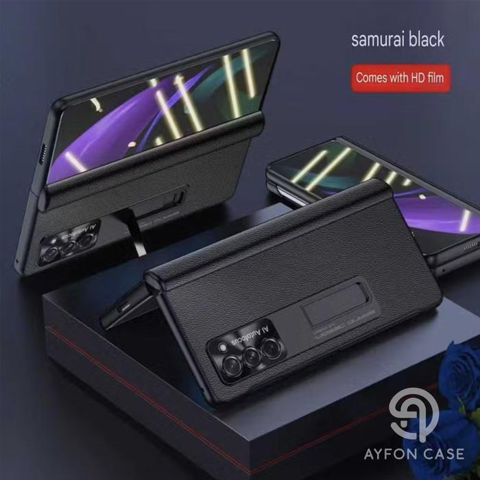 CASE FOR Z FOLD 4 Z FOLD 5 Z FOLD 6 Z FOLD 7 MAGNETIC KICK STAND LEATHER HARDCASE AF-213 - BLACK Z FOLD 4