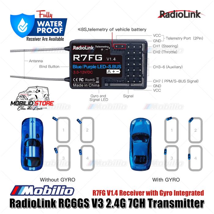 Radiolink RC6GS V3 7 Channels RC Transmitter and Receiver R7FG Fully Waterproof Available for Cars