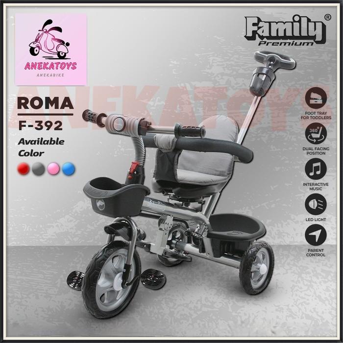 Sepeda Roda Tiga Anak Family Roma F392 Stir Dorongan Pengaman (jok busa tebal)