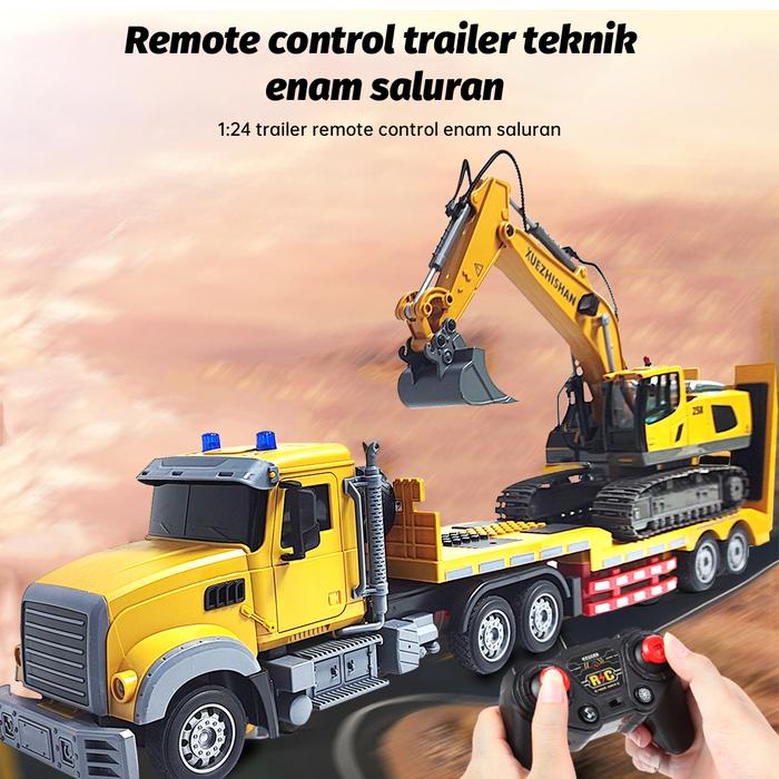 TRUK TRAILER RC 2.4GHz SKALA 1:24 (Lampu LED & Efek Suara Realistis) - Kontrol 6 Saluran + BONUS 1