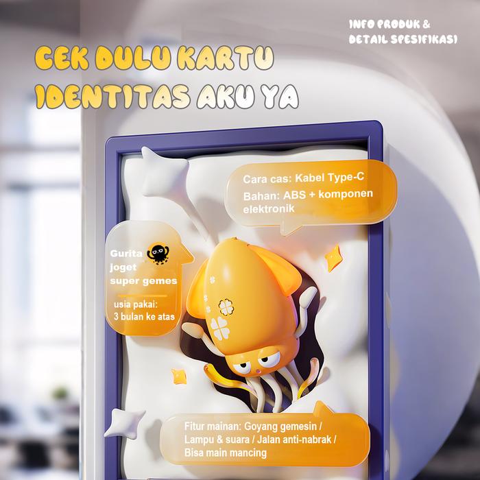 Toyslndonesia Mainan Gurita Menari Dancing Octopus Simulasi Cumi Musik Lampu Interaktif Anak Edukasi