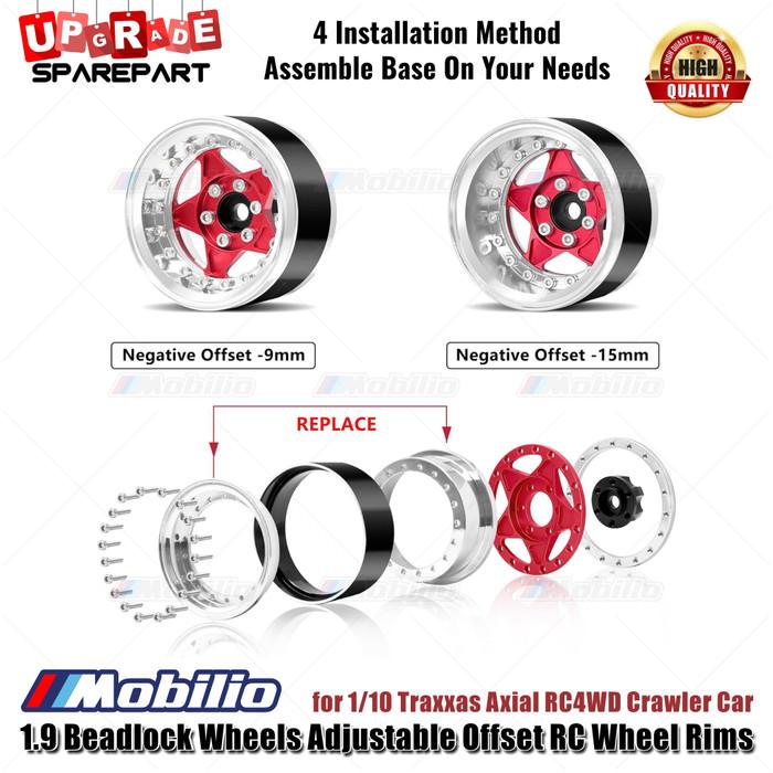 Metal 1.9 Beadlock Wheels Adjustable Offset RC Wheel Rims Velg for 1/10 Traxxas Axial RC4WD RGT