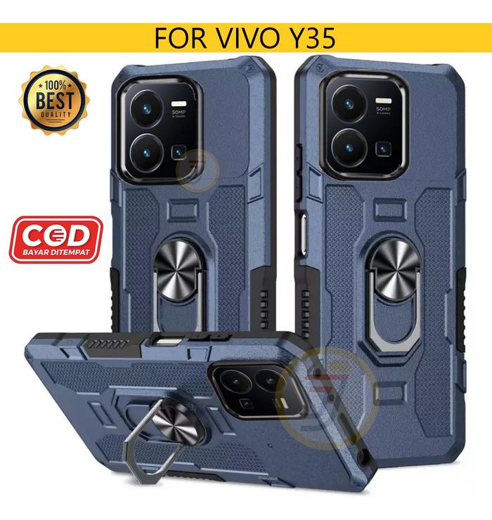 Casing Untuk vi-vo Y35 Ring Armor Robot Case Kickstand Hybrid/Ring Holder TPU Handphone Hardcase - Hitam vi-vo Y35