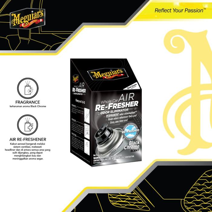 Meguiars Whole Car Air Re-Fresher Odor Eliminator Mist Black Chrome Scent Pengharum Mobil Ruangan
