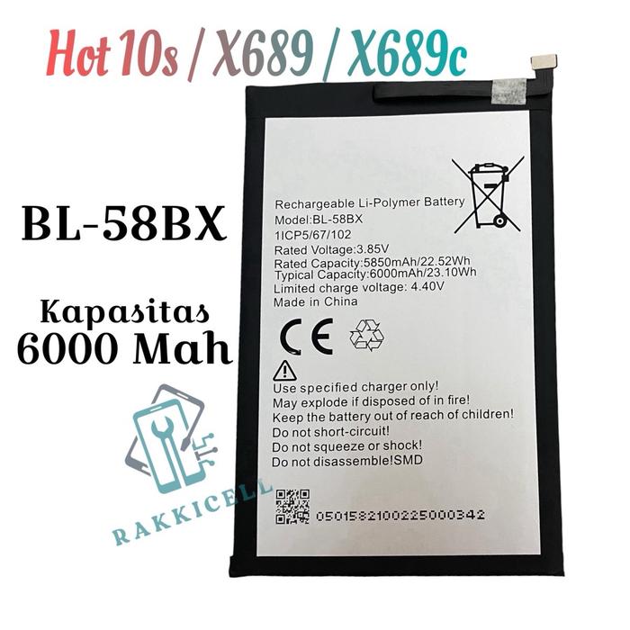 Baterai For Hp Infinx Hot 10S / X689 / X689c - Hot10s BL-58BX - Batrai Batre Batere Batery Hape Rakki
