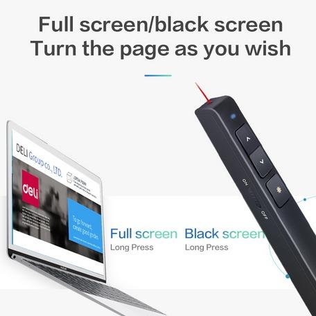 Deli Laser Pointer + Presenter Wireless USB Pen Laser Presentasi PPT Sinar Merah Jarak 30m 2802 - Hitam