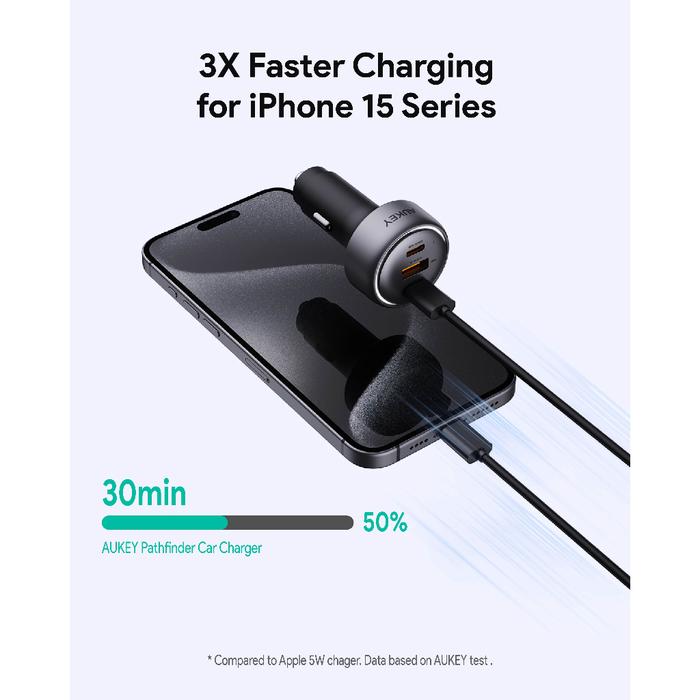 Aukey Car Charger 66W USB & Type C 3 port LED Indicator PD 3.0 Fast Charging Casan Mobil Samsung Iphone - CC-P1