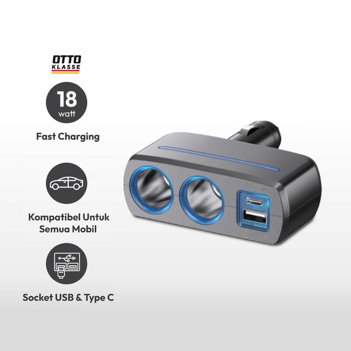 OTTO KLASSE CHARGER MOBIL USB & TYPE C DENGAN LIGHTER SOCKET 1918D