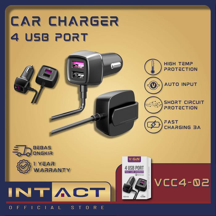Car Charger V-GeN VCC4-02 Fast Charging QC3.0 4 USB Port VGEN