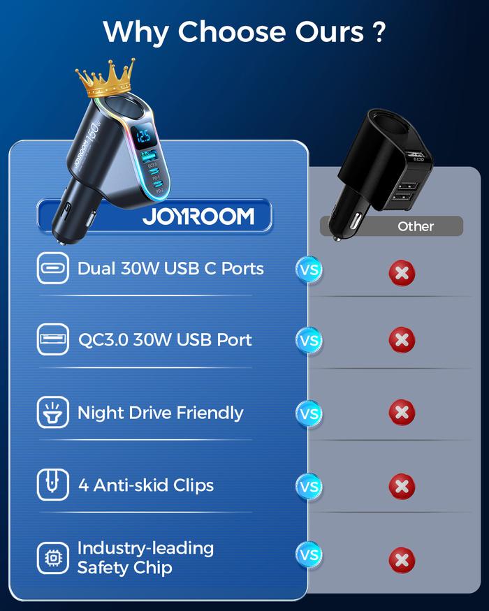 JOYROOM CL21 Car Fast Charger Mobil 4in1 150W Digital Display - CL21