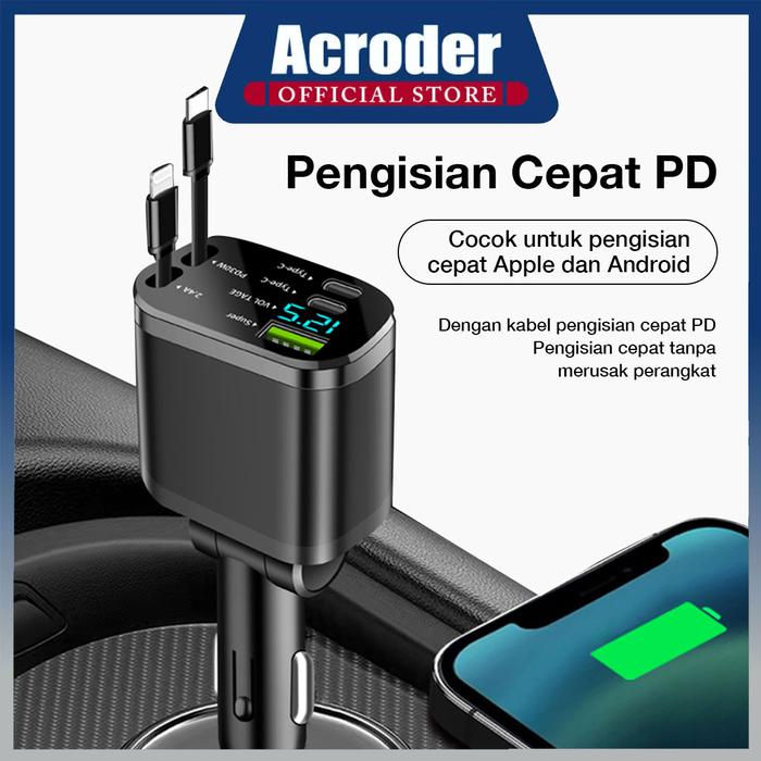 Acroder Car Charger Mobil 5 Ports PD 130W USB Type C & Lightning Fast Charging QC 3.0 - iPhone+Type-C-PD30W