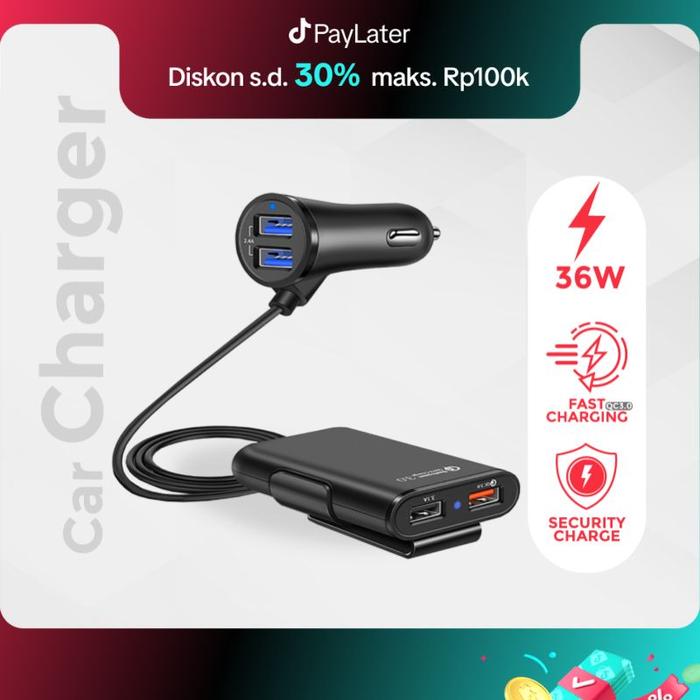 Car Charger / Colokan Mobil 4 Ports QC3.0+2.4A+3.1AUSB JOYSEUS Fast Adapter Black - JM0005 Adaptor Cable - BLACK