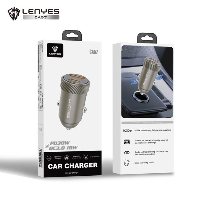 LENYES CA57 PD30W Mini Car Charger Fast Charging QC3.0 Dual Port Type C + USB Adaptor Saver Mobil Untuk HP