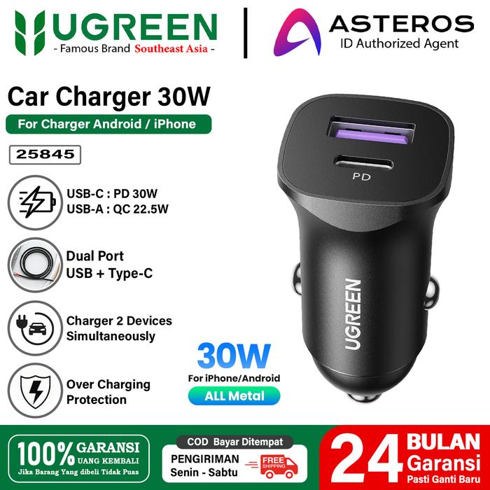 UGREEN Car Charger Mobil Fast Charging Samsung iPhone iPad Laptop Etc - 25845 30w