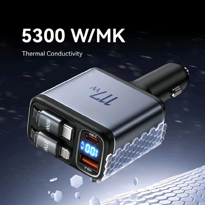 KIIP SC18 Car Charger Mobil 4in1 Built-iN Kabel Retractable 117W USB TYPE C PD QC Fast Charging