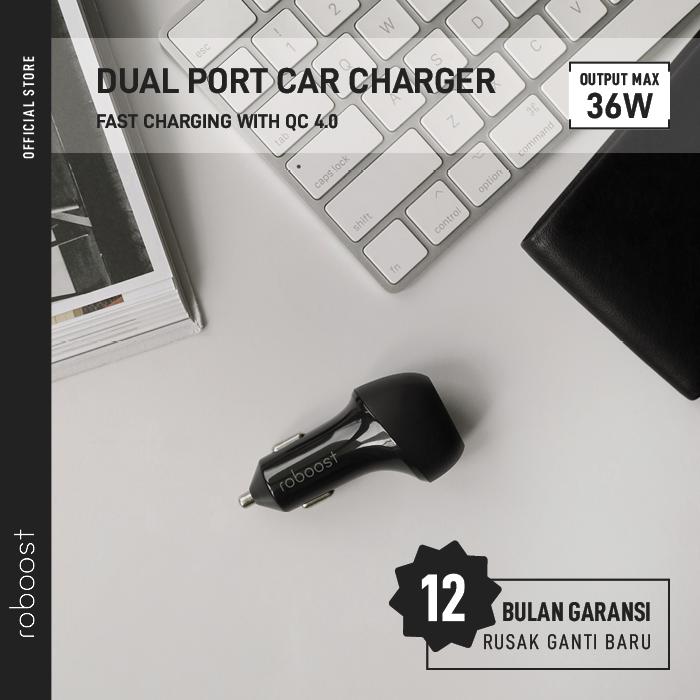 roboost Car Charger Mobil Dual Port Max 36W Fast Charging PD QC 3.0 Adaptor Adapter - Hitam