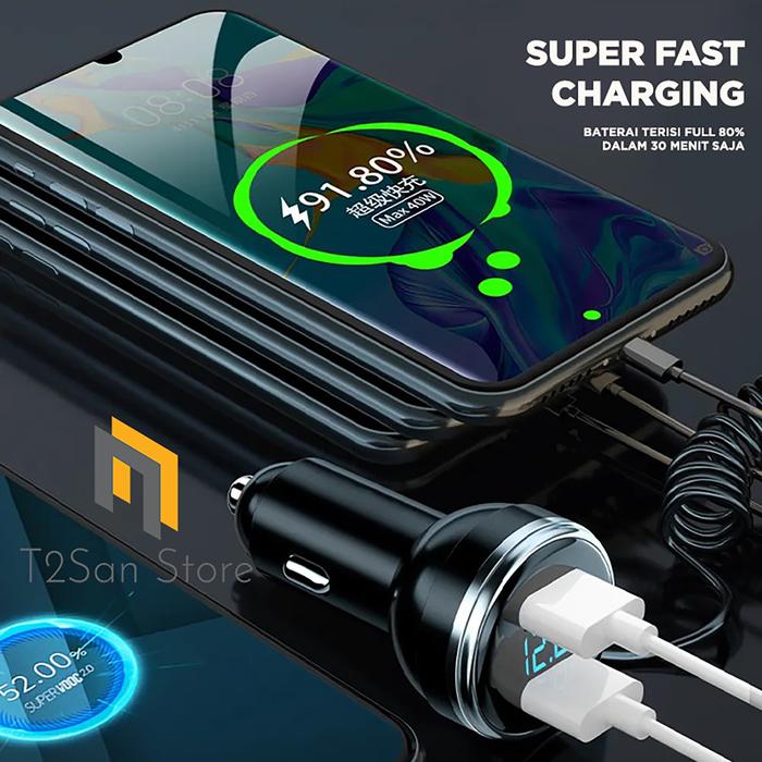 Adaptor Charger Mobil Super Fast Charging Port Type C & USB + Multiple Connector CH24