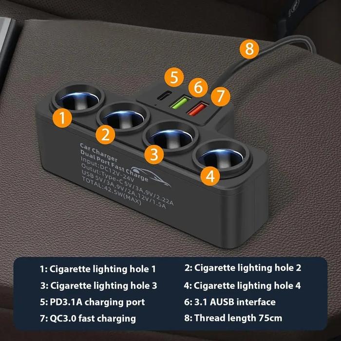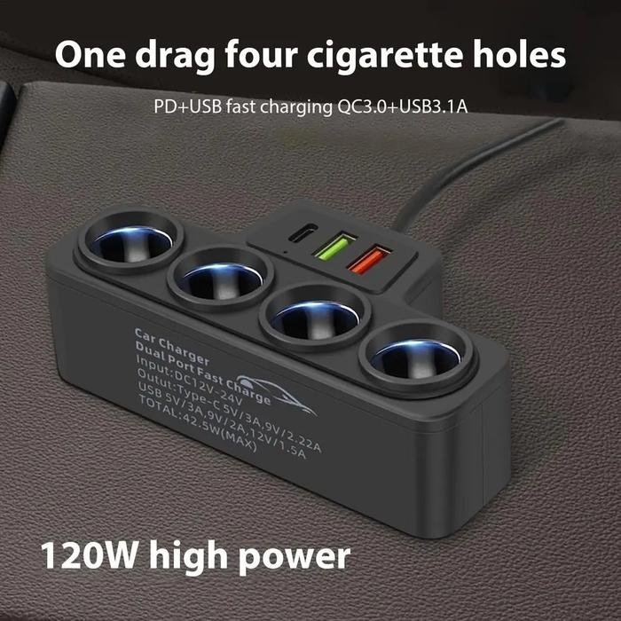 ADOREHER Charger Mobil Cigarette Lighter USB Port PD QC 120W - D-25 - Hitam