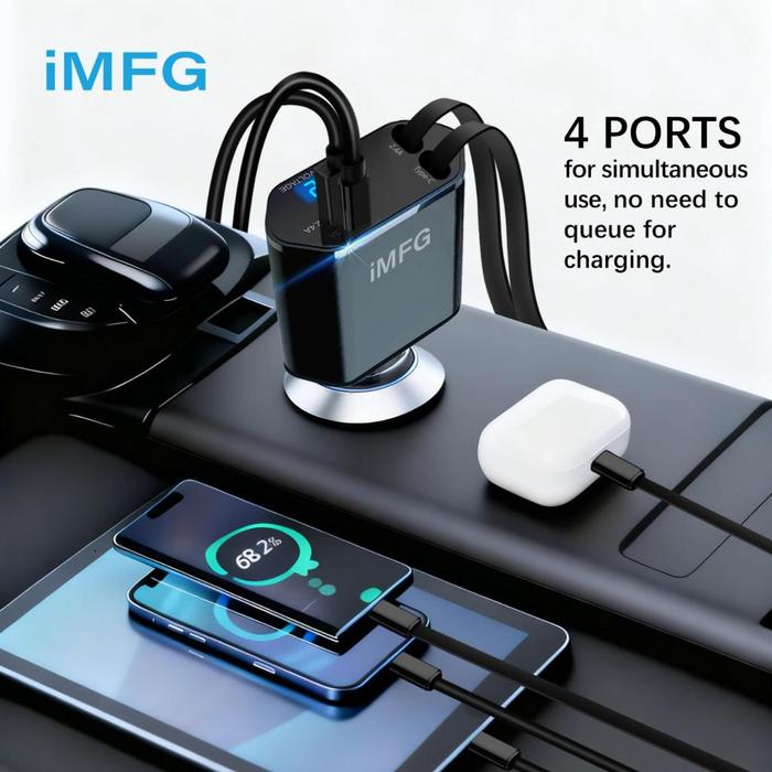 iMFG Car Charger Colokan Mobil 4 Ports PD 100W USB Type C & Lightning Fast Charging Pengisi Daya Mobil - i-B1