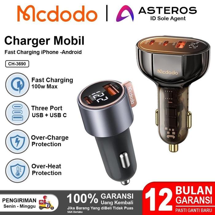 MCDODO Car Charger Mobil 100w PD + QC3.0 Fast Charging CC-2310 - CC-3690 75W