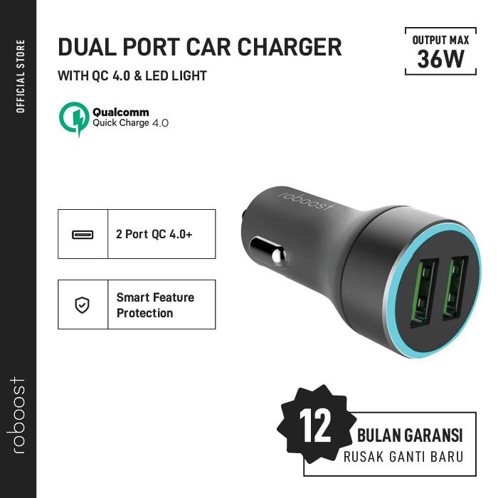 roboost Car Charger Mobil Dual Port MAX 36W QC 4.0 3.0 Fast Charging Support AFP FCP - Hitam